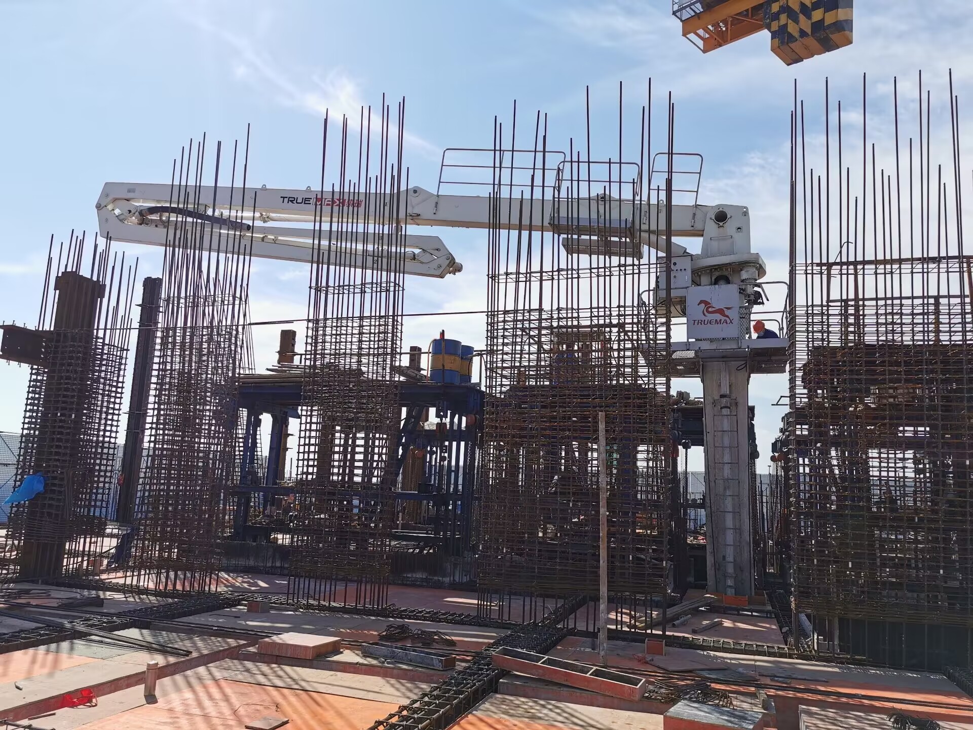 內(nèi)爬布料機(jī)的臂架為R型,全液壓驅(qū)動(dòng),折疊、展開靈活,布料范圍廣。臂架結(jié)構(gòu)采用高強(qiáng)度鋼板制作,強(qiáng)度大,自重輕。