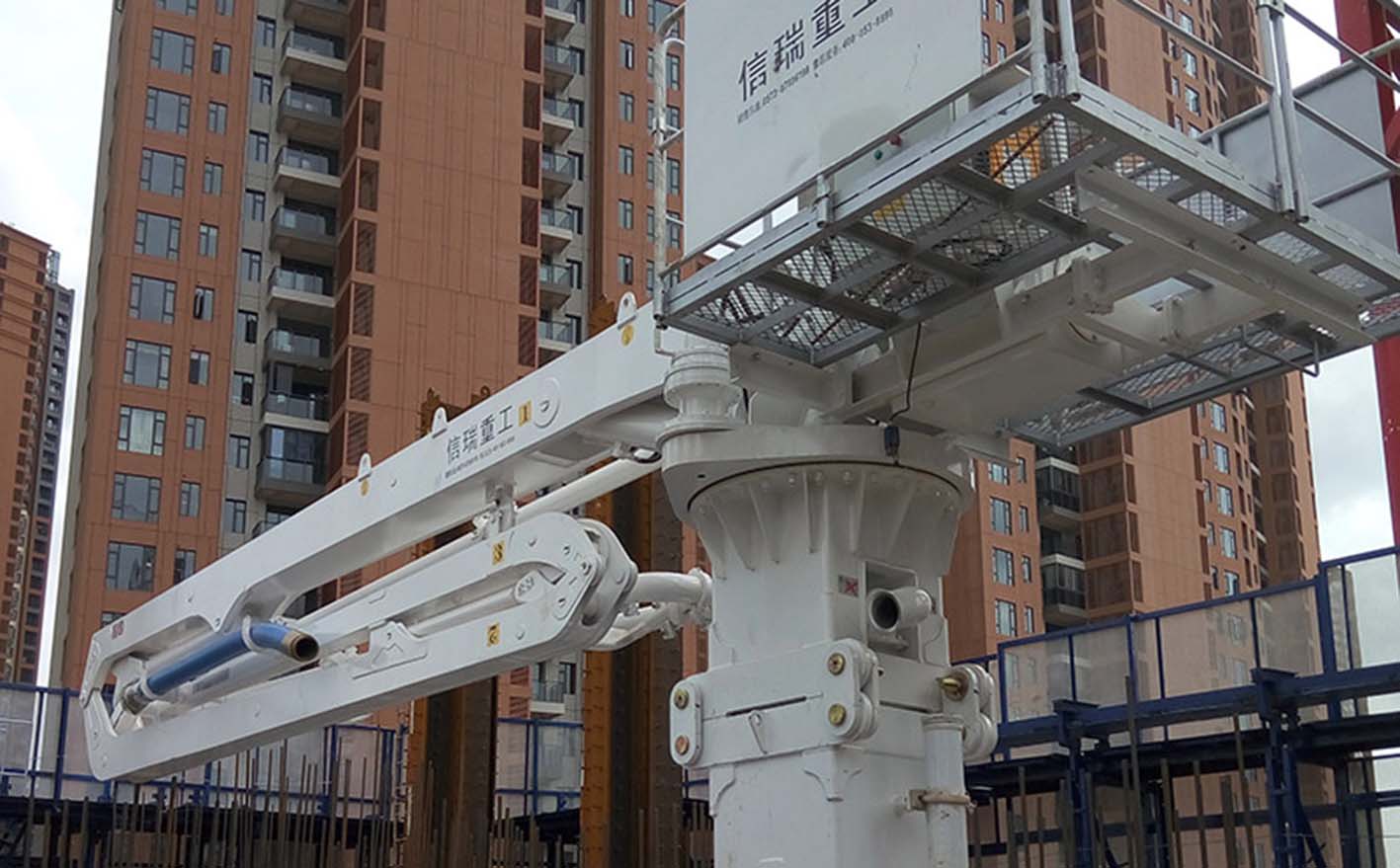 HG21AM-3R固定式液壓布料機·布料范圍廣。臂架結構采用高強度鋼板制作,強度大,自重輕。·整機采用模塊化設計,且模塊之間采用銷軸快速鏈接,拆裝方便,運輸快捷。·可選擇無線遙控或有線遙控操作方式,操作輕松方便。·隨爬升模架一起爬升,減少爬升工作量,提高效率。·液壓電氣元件采用國內外知名品牌,性能穩(wěn)定。·采用45Mn2耐磨輸送管,提高輸送管壽命,減少換管次數(shù),提高生產效率。產品參數(shù)?&n